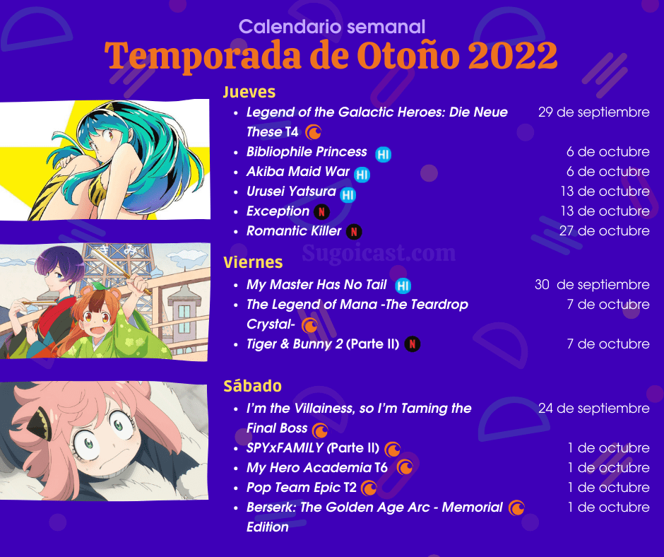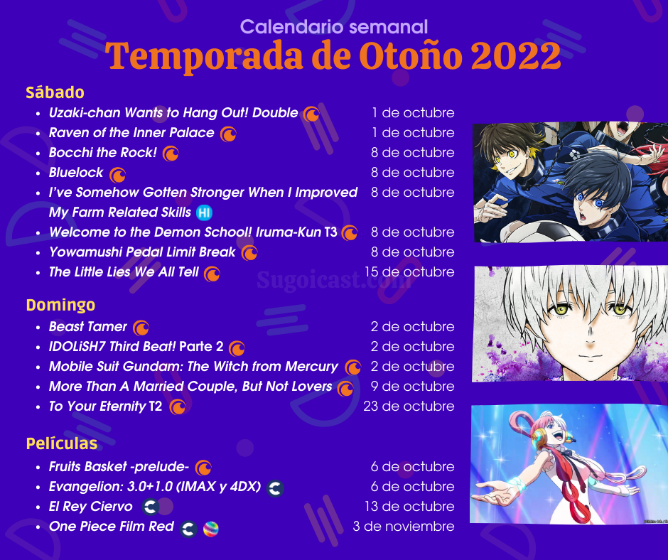 Para que tengas bien presente qué días son los estrenos de anime de otoño 2022 te hicimos un calendario. ¡Tipazas!