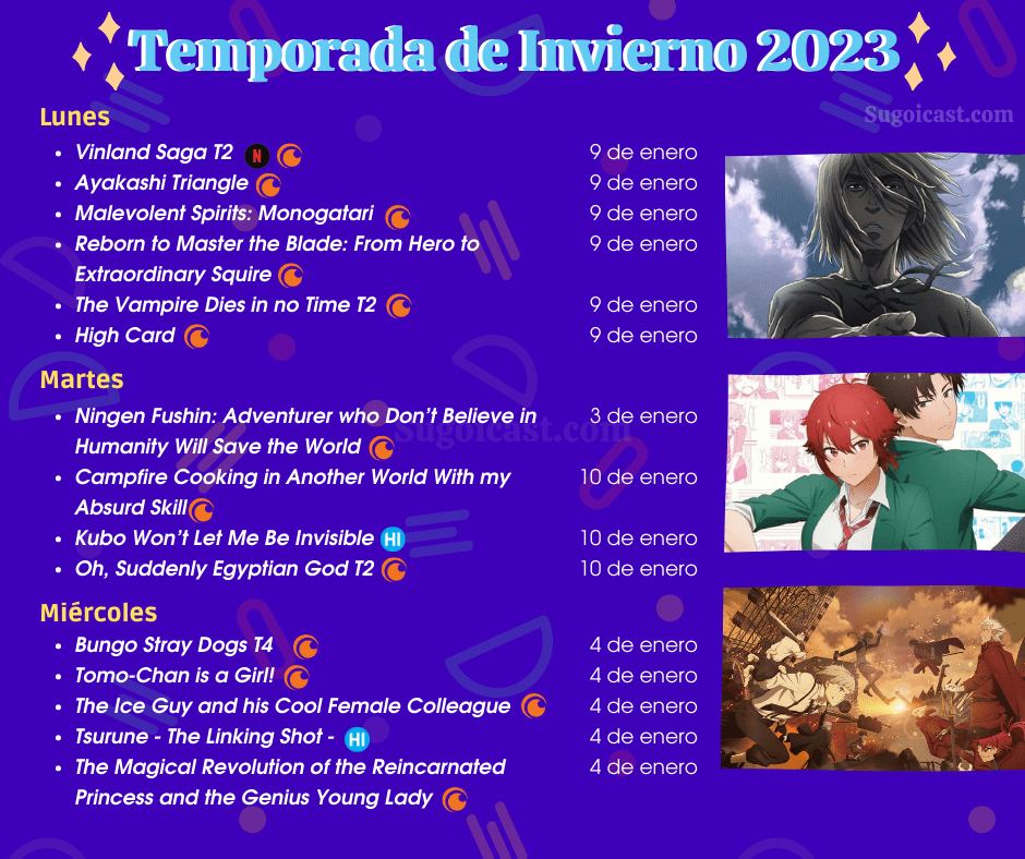 Para que no se te pasen los estrenos de anime de invierno 2023 te hicimos un calendario. 🗓️ Somos las mejores, lo sabemos.