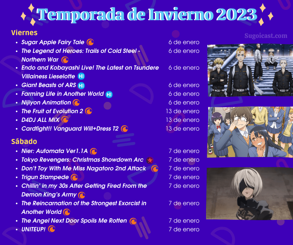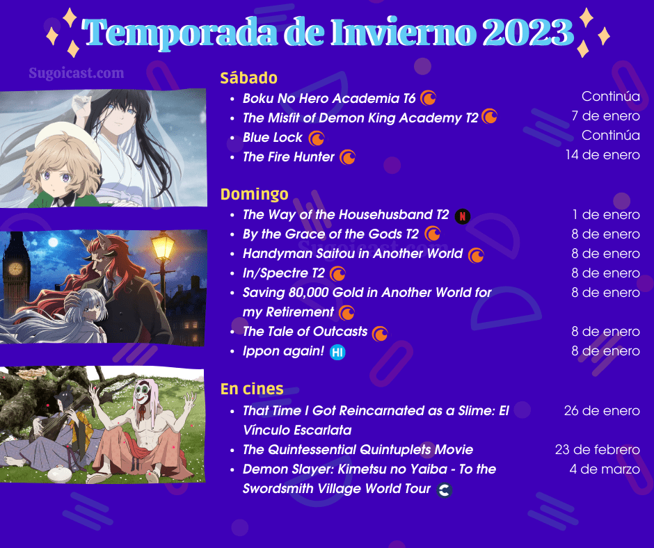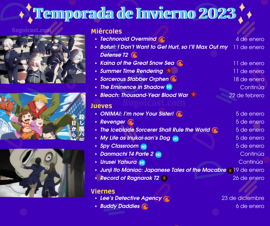 Cuéntanos aquí o en redes sociales cuáles son los animes queue verás esta temporada de invierno 2023 y de cuáles te gustaría que habláramos en un episodio de Sugoi Cast!