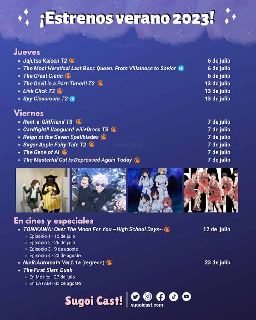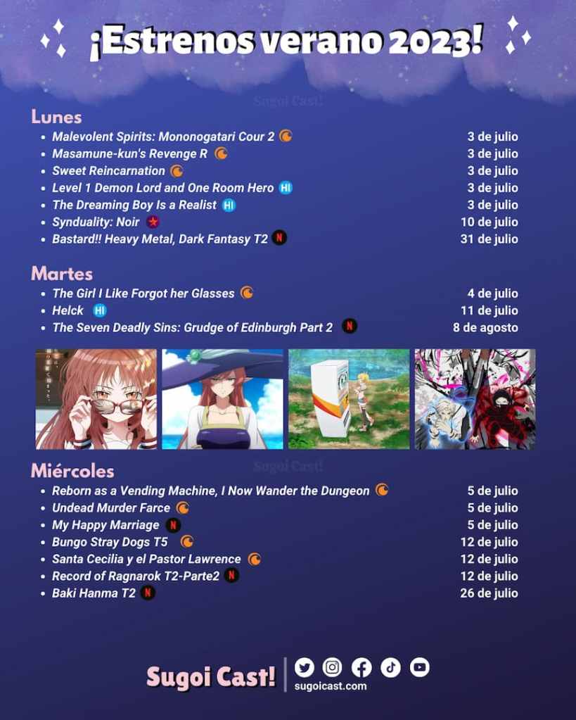 Para que no se te pasen los estrenos de anime de verano 2023, te hicimos este calendario.📅🍧🎋